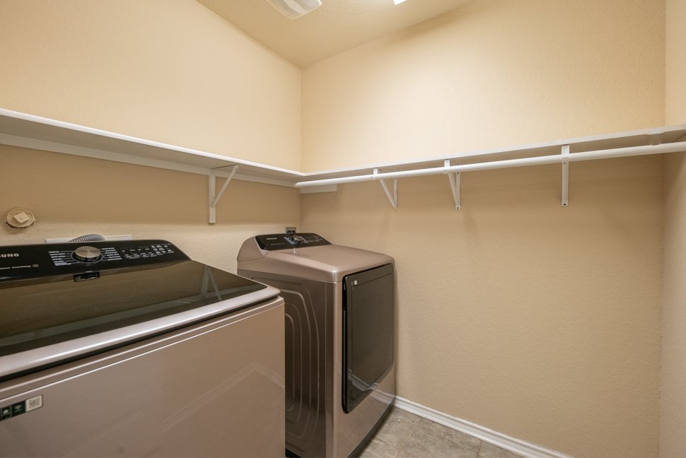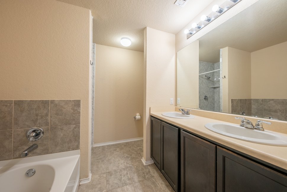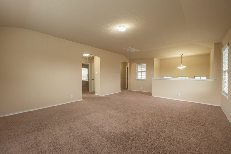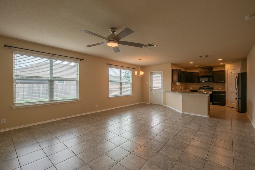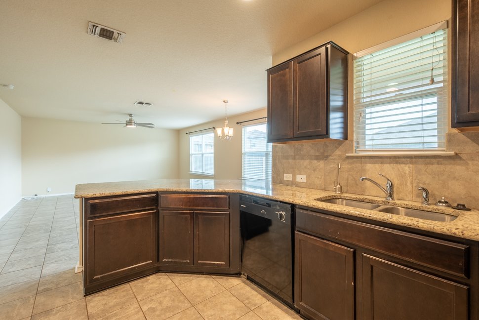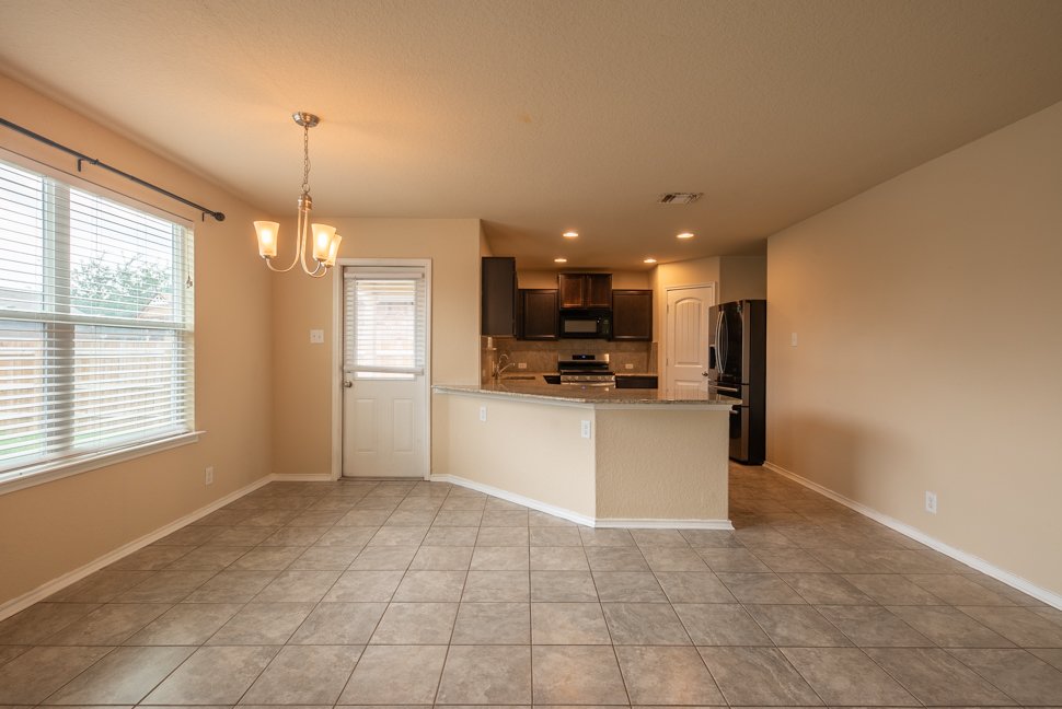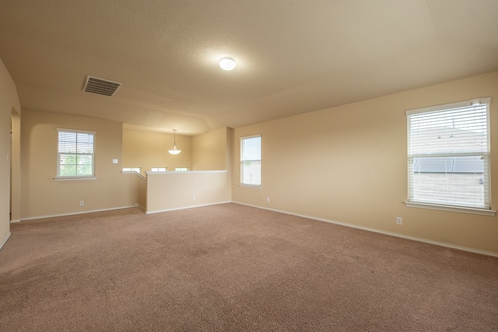 Welcome to 6114 Hackberry Pond, a beautifully maintained 3-bedroom, 2.5-bath home boasting over 2,043 sq ft of stylish living space. From the charming brick exterior with unique diamond design to the inviting arched entry, this home offers exceptional curb appeal and a warm welcome. Step inside to freshly painted interiors, upgraded LED lighting, and a bright, open-concept layout. The living and dining area is filled with natural light, featuring a modern nickel-finished chandelier. The gourmet kitchen is a chef's dream with granite countertops, tiled backsplash, recessed lighting, ample cabinetry, black appliances, and a walk-in pantry. Upstairs, a massive loft offers flexible space for a media room, playroom, or home office. The spacious master retreat includes a walk-in closet and a luxurious en-suite bath with a floor-to-ceiling tiled shower, soaking tub, dual vanities, and chrome fixtures. Two generously sized bedrooms feature wide closets, and share a full bathroom with a tiled tub and nickel fixtures. Enjoy the outdoors in the large backyard with a covered patio, perfect for entertaining or relaxing evenings. Don't miss out on this beautiful home - schedule your showing today!